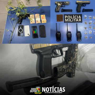 Também foi encontrada na residência uma pistola PT calibre 9mm, marca Canik, modelo TP9DA, municiada com 18 munições intactas, além de dois carregadores e 36 munições de 9mmForam encontrados também 14 buchas de maconha, e três rádios comunicadores, sendo 2 rádios que estavam na cintura dos indivíduos. O material apreendido e os indivíduos foram encaminhados para 18° Delegacia de São Mateus.